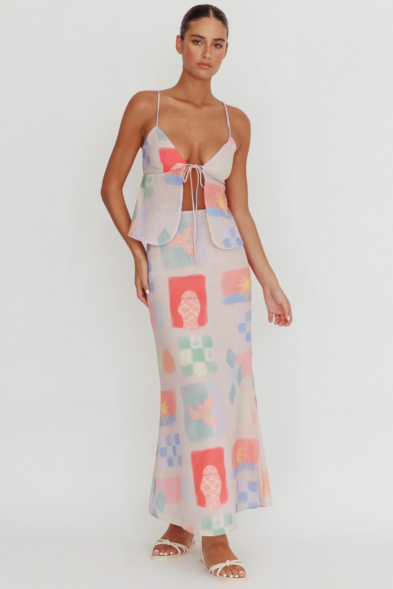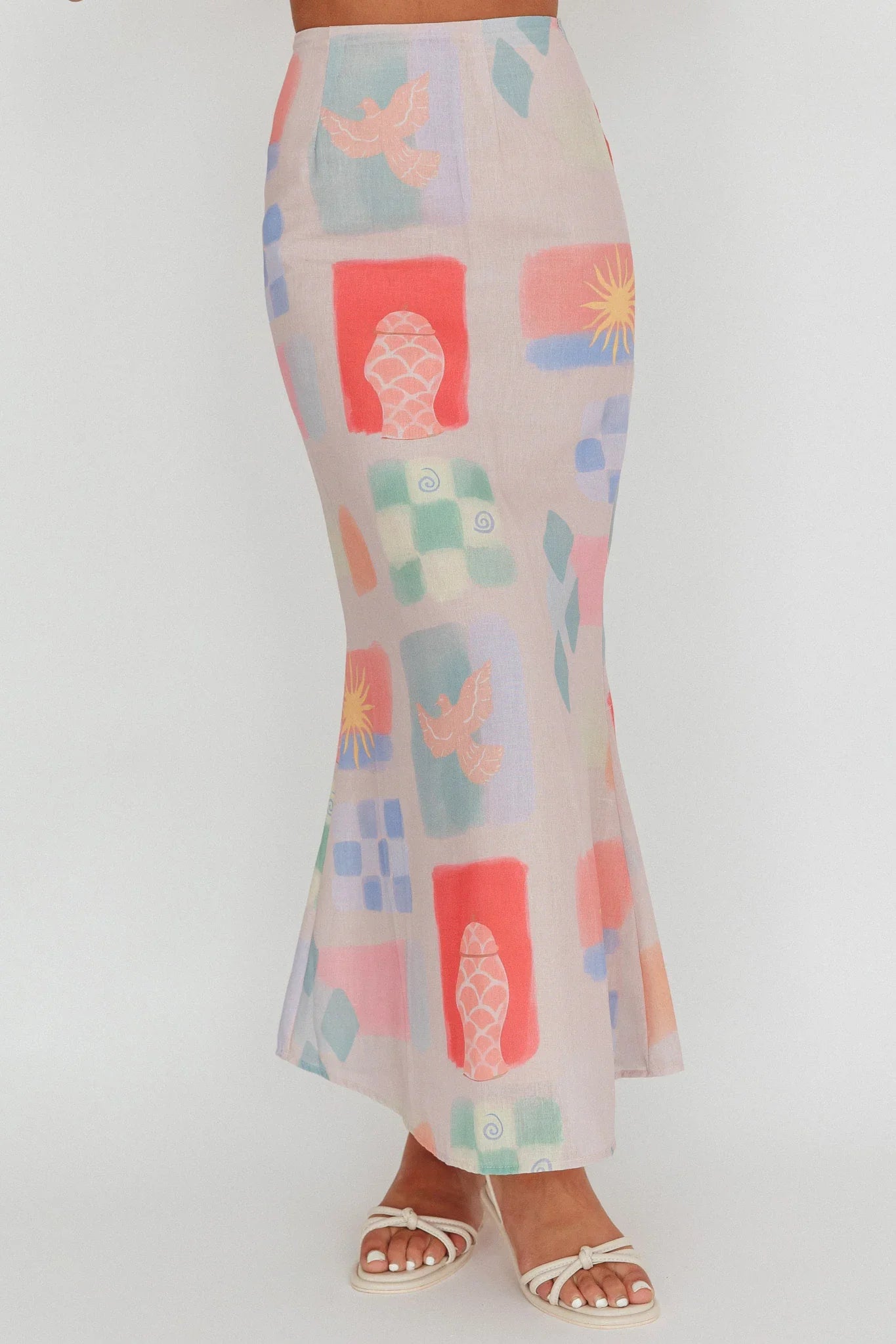 Elevate your spring summer waredrobe with our Heart & Soul maxi skirt. It boasts a colourful print that adds a playful touch to your look. Whether you're having a picnic with your girlies or strolling along the beach, this skirt is your go-to. Pair it with it's matching top for effortless style.