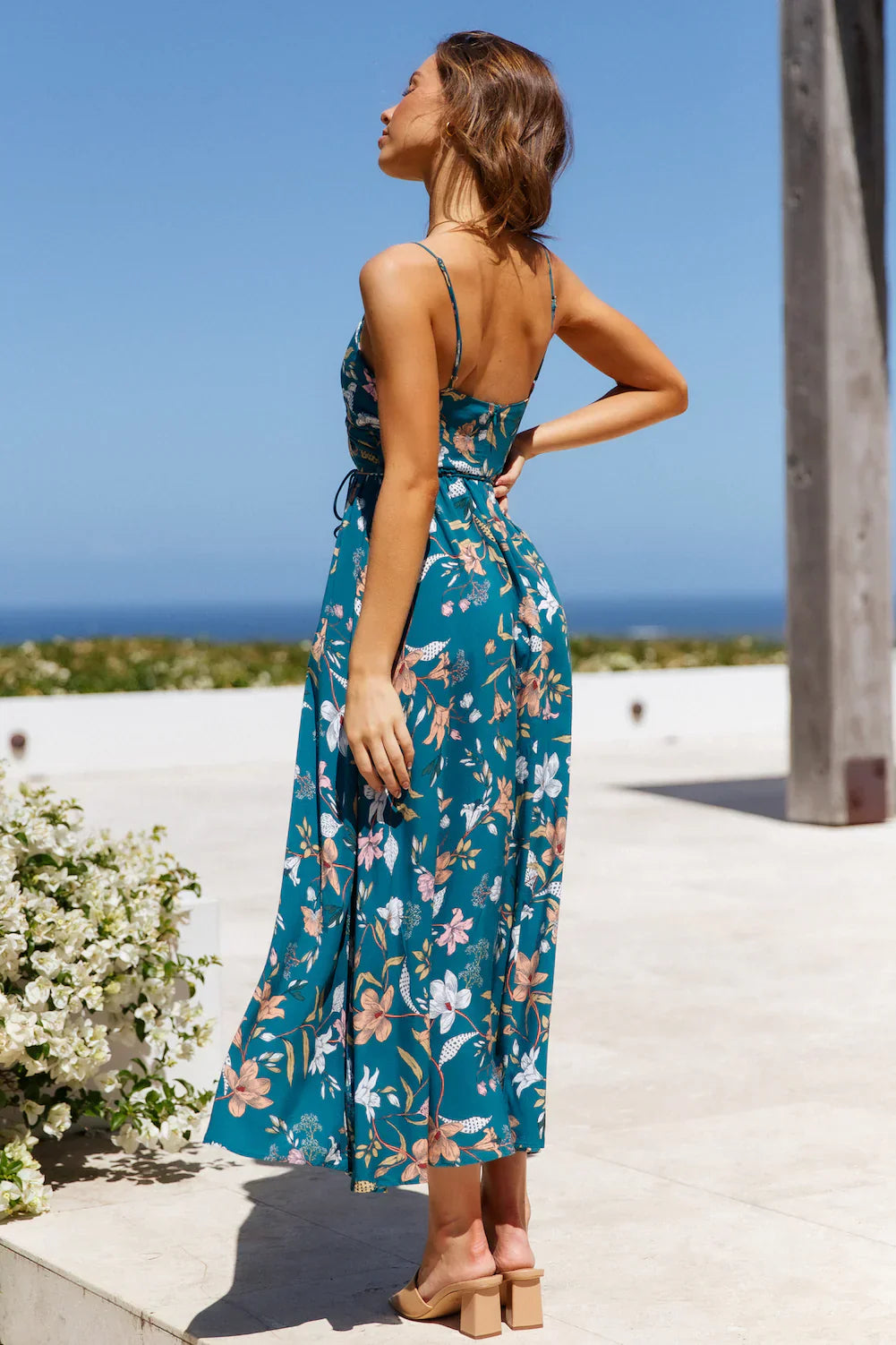 Ready to dress your best? We're ready to wine and dine in the fanciest of rooftop bars in our Lady Like You Midi Dress! It's a little flirty, perfectly floral, and features a trending twisted neckline! Use the matching waist tie to cinch you in, and style with lush suede heels.